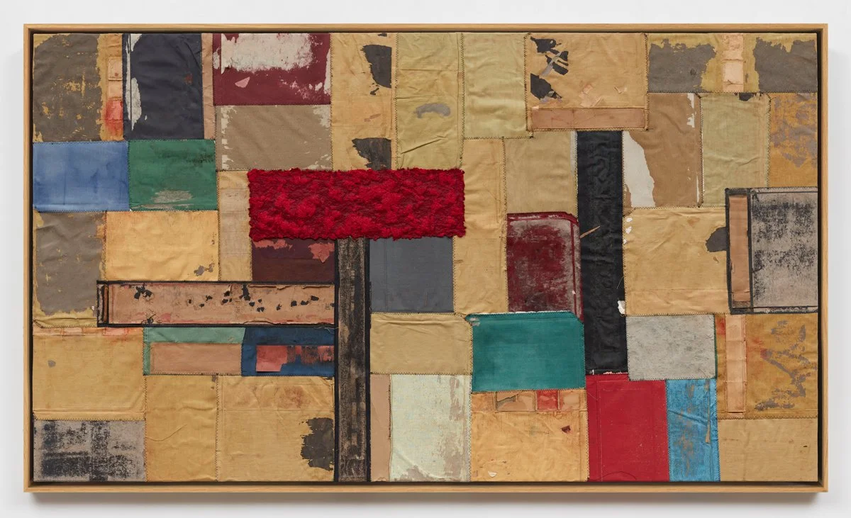 The Process of Skinning: Jones commits violence against the texts by ripping the covers ("skins") from the binding. This act is a structural refusal of the textual authority. The Fissure here is the act of separation; the cover, now a flayed skin, is stitched into compositions that reveal the violence and manual process of deconstruction. This is a weaponized abstraction. It looks like formalist art, but its material substrate carries a heavy Moral Weight.
