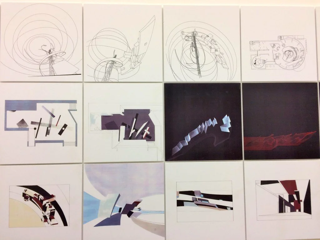 This image displays Zaha Hadid's visionary early architectural paintings. Created during her "paper architect" phase, these works served as a creative research principle for her deconstructivist style, exploring a new, fluid geometry long before it was possible to build.